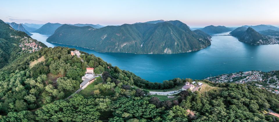 Der Luganersee (Schreibweise in Deutschland und Österreich Luganer See), italienisch Lago di Lugano oder Ceresio (eine Italianisierung des lateinischen Namens Ceresius), deutsch veraltet Lauisersee (nach der früheren deutschen Bezeichnung Lauis für Lugano), ist einer der oberitalienischen Seen. Der See befindet sich zu 63 % im Schweizer Kanton Tessin. Zu 37 % liegt die Seefläche in italienischem Gebiet. Er ist nach der Schweizer Stadt Lugano benannt. Seine Oberfläche liegt 271 m über dem Meeresspiegel und misst 48,8 km², von denen 30,7 km² zur Schweiz und 18,1 km² zu Italien gehören. Seine tiefste Stelle liegt bei 288 m, und sein Volumen beträgt 5,9 km³. Der wichtigste Zufluss ist der Vedeggio mit 4 m³/s. Seine Form erklärt sich durch seine Entstehung nach der Eiszeit in einem Gebiet, in dem zwei Gletscher zusammentrafen. Durch den künstlichen Seedamm von Melide wird der See in ein Nord- und Südbecken geteilt. Das Nordbecken hat eine Fläche von 27,5 km², das Südbecken 20,3 km², dazu kommt das kleine Becken, genannt Laghetto[4] (deutsch ‚kleiner See‘), von Ponte Tresa mit 1,0 km². Einige Ausläufer des Sees reichen nach Italien, dazu befindet sich die durch ihr Spielkasino bekannte italienische Exklave Campione d’Italia an seinem Ufer, was zu einem komplizierten Grenzverlauf führt. Südlich von Lugano überqueren die Autobahn A2 und die Gotthardbahn den See auf dem Seedamm von Melide. |